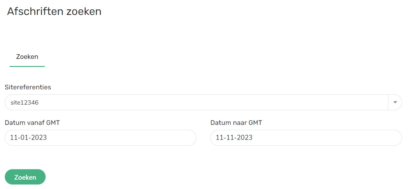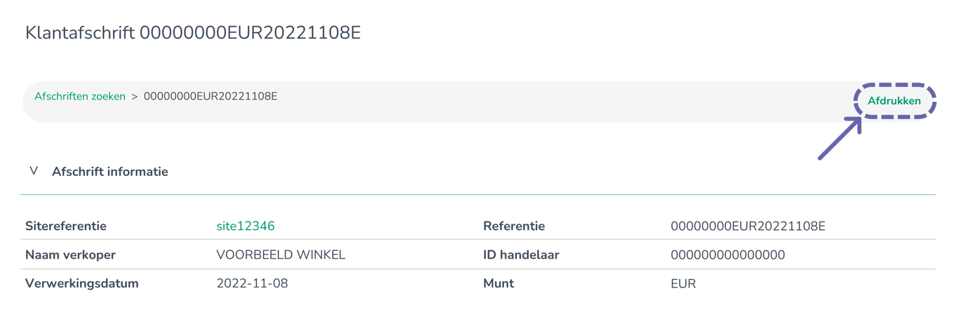 Als je meerdere sitereferenties hebt die zijn toegewezen aan dezelfde Merchant Id (MID), dan kun je je afschrift vinden op een van de gerelateerde sitereferenties.