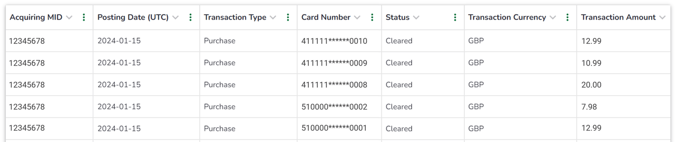 Deze zoekopdracht is de eenvoudigste manier om te bepalen of transacties zijn goedgekeurd voor afwikkeling en om hun unieke Acquirer Reference Numbers (ARN) te vinden.