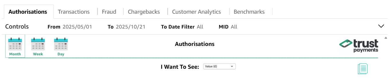 - Waarde (£) - Alle grafieken en afbeeldingen tonen monetaire waardenDit helpt je bij het analyseren van inkomsten en transactiebedragen.