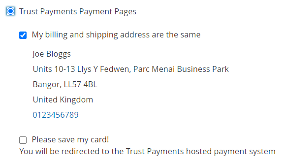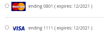 Complete a test transaction with the save card option selected. Following a successful transaction, the saved card(s) should appear on the customer's next checkout like this:
