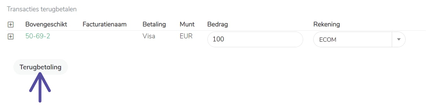 Je krijgt informatie te zien over de transacties die kunnen worden terugbetaald. Controleer de details die op het scherm worden weergegeven en selecteer "Restitutie" als je klaar bent om het verzoek te verwerken.