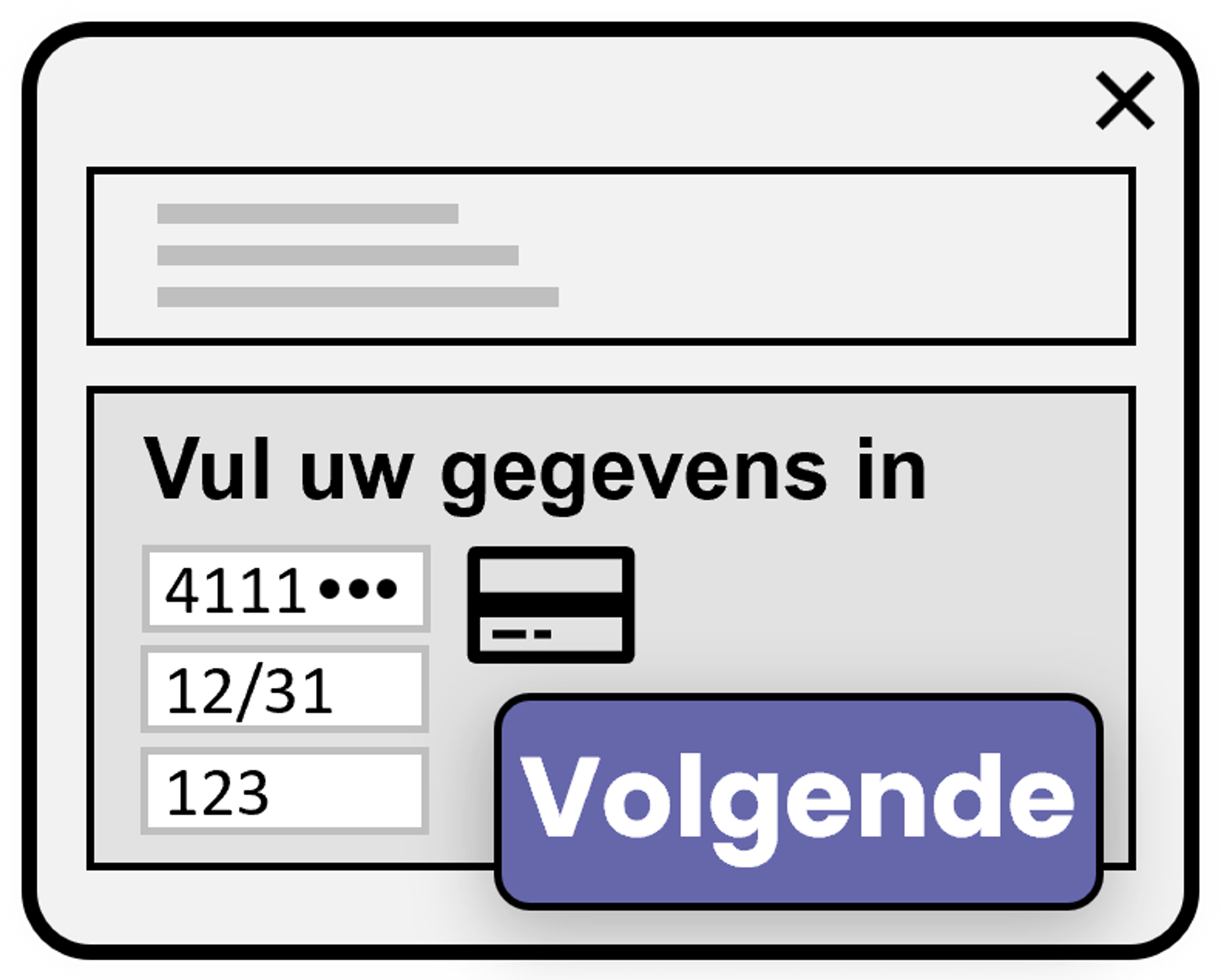 - Tijdens het afrekenen vraagt uw website de klant om zijn adres- en kaartgegevens.