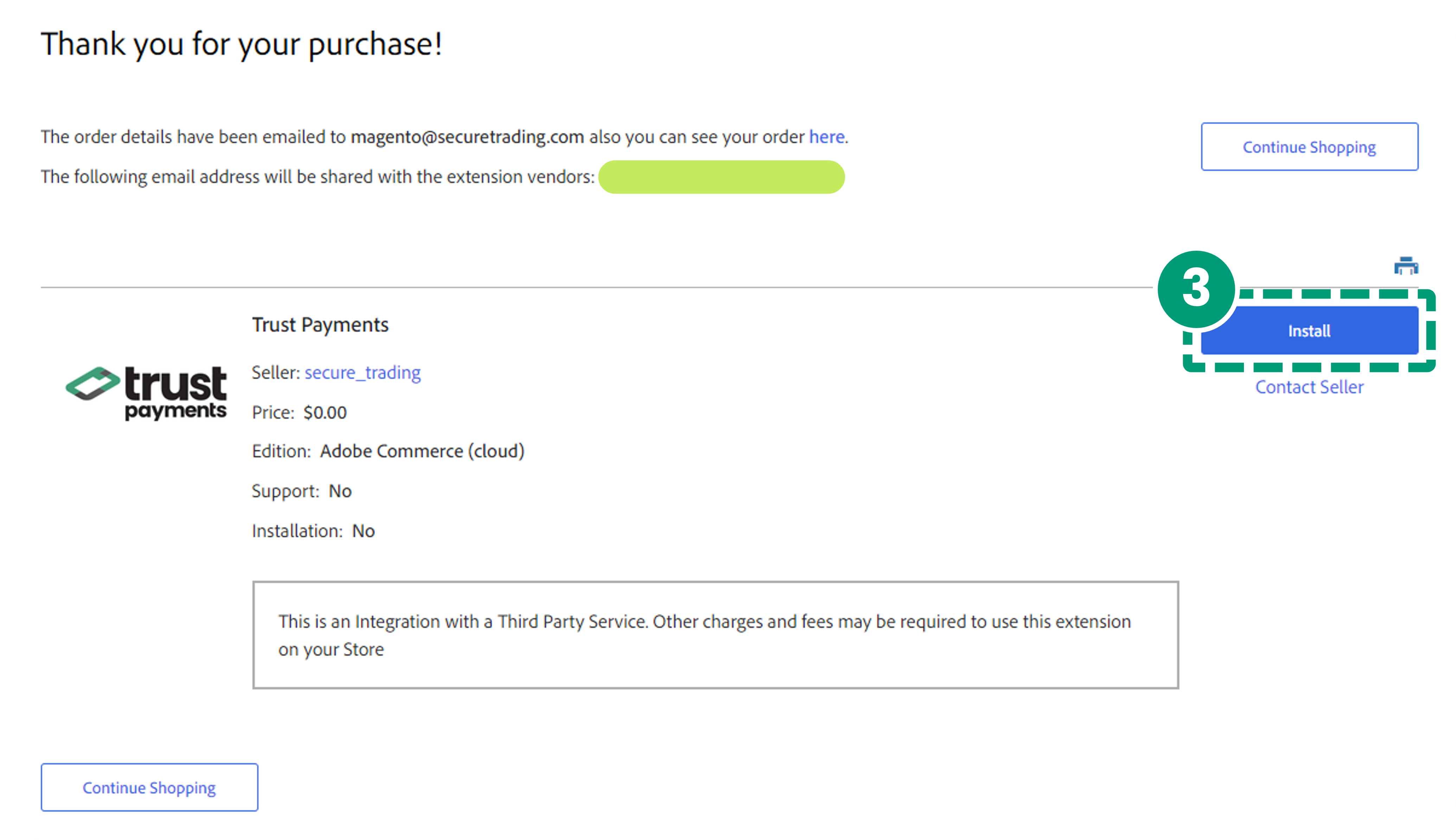 Then place the order. You will be shown the following - select "Install" to proceed: