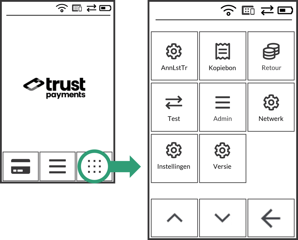 3 - Menu - Voor toegang tot de menufuncties van de terminal