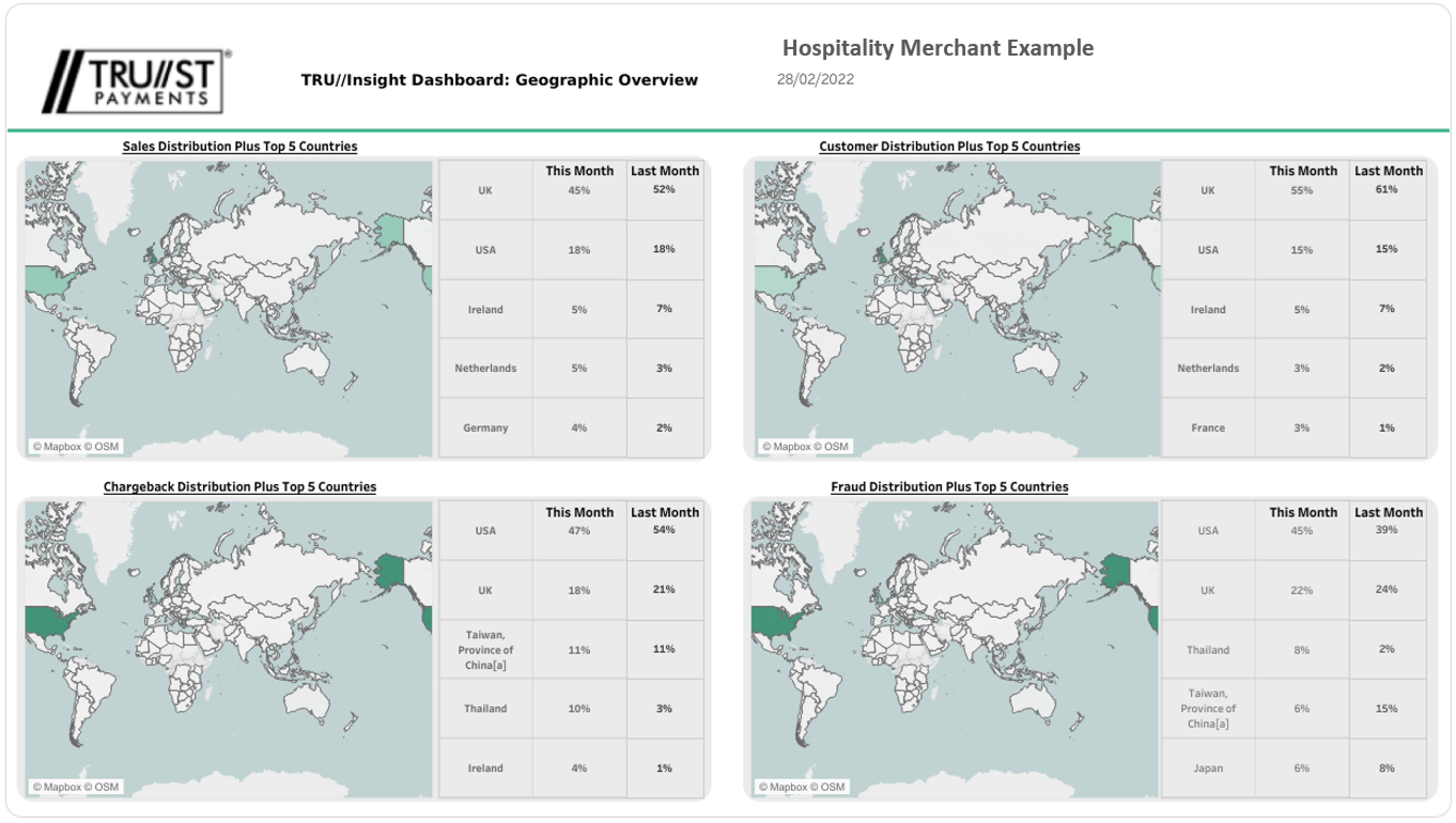 - "Chargebacks" - The 5 countries where your business incurs the highest number of chargebacks.