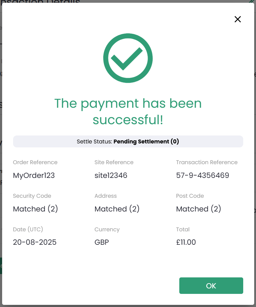 The Transaction Reference uniquely identifies the payout on our system. You can use this to view the status of the transaction at a later time.