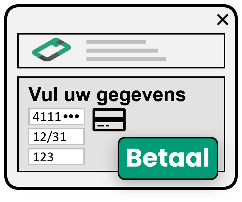 De klant voert de betalingsgegevens in bij onze gehoste kassa.